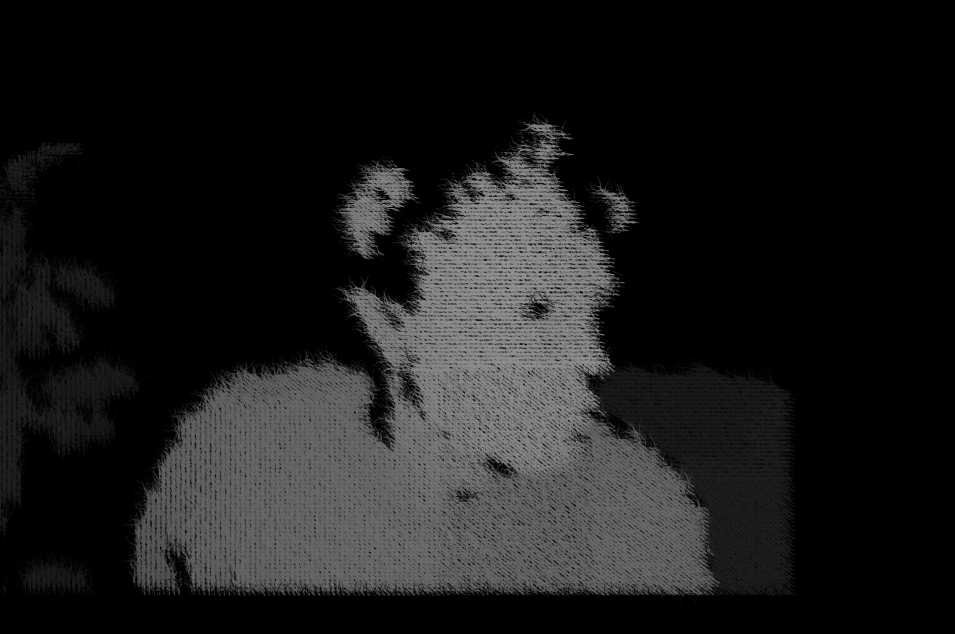 One of the first things that surprised me when first accessing the Kinects depth imagery was just how organic it is. I was expecting something for more blocky and pixelated not raggedy pulsing edges. I was captivated by this aesthetic and by the idea that this computers way of seeing was very different to those that had gone before it. If I was going to embrace this I should embrace it differences. I issue i had was that even though the image looked organic, if I wanted to enlarge this imagery I soon came upon pixelation, which went against the look that I liked. At this stage I decided that I was going to enhance the ragged look and build another layer of texture on top of that which the kinect gave me.